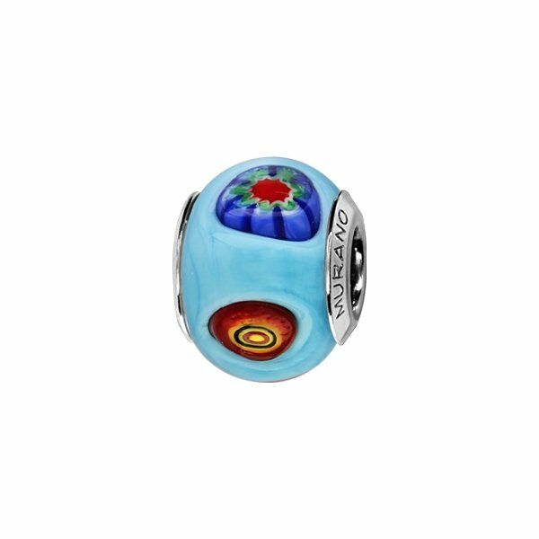 Charms coulissant argent rhodié murano véritable rose avec fleur