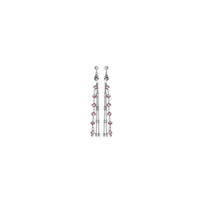 Boucles d'oreilles tige argent rhodié pendantes 3 chaînettes perles synthétiques roses