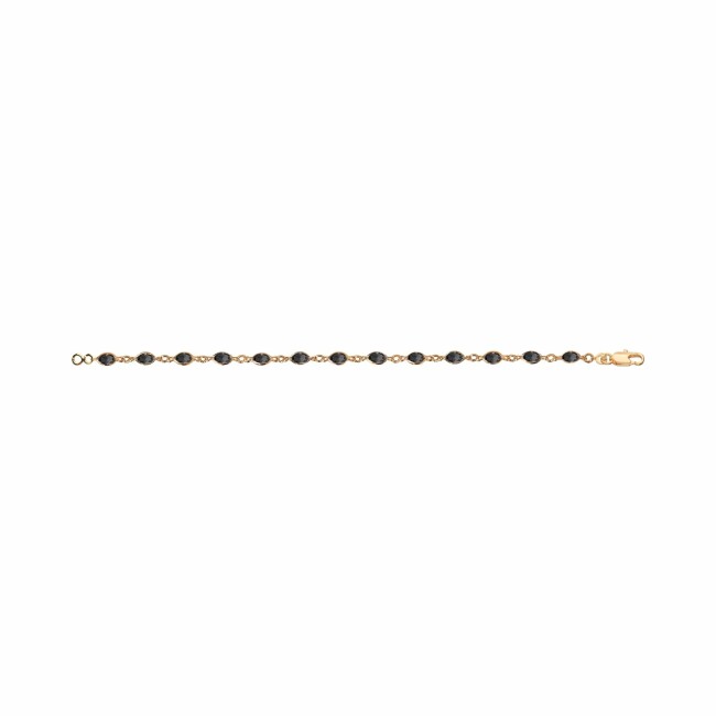 Bracelet plaqué or pierres ovale noires 16+3cm