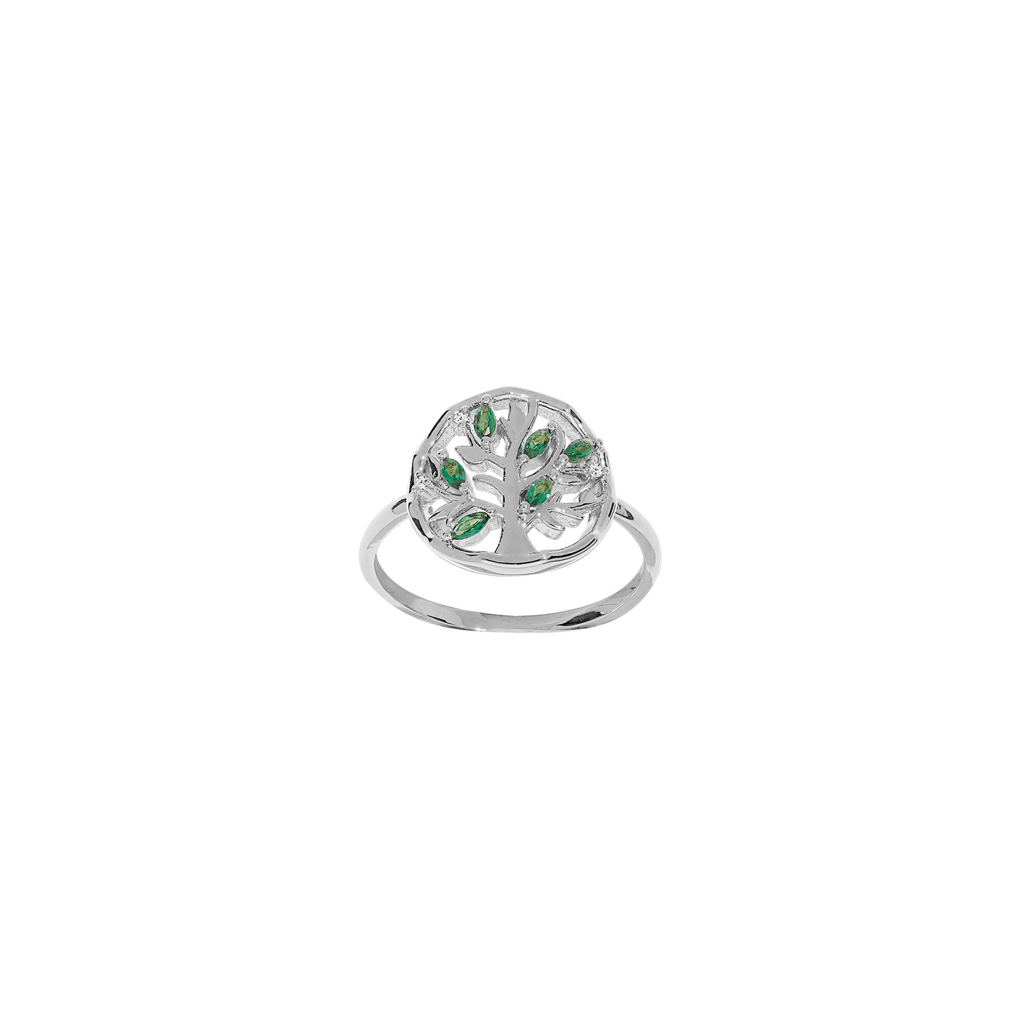 Bague arbre de vie en argent rhodié et oxydes de zirconium, taille 56