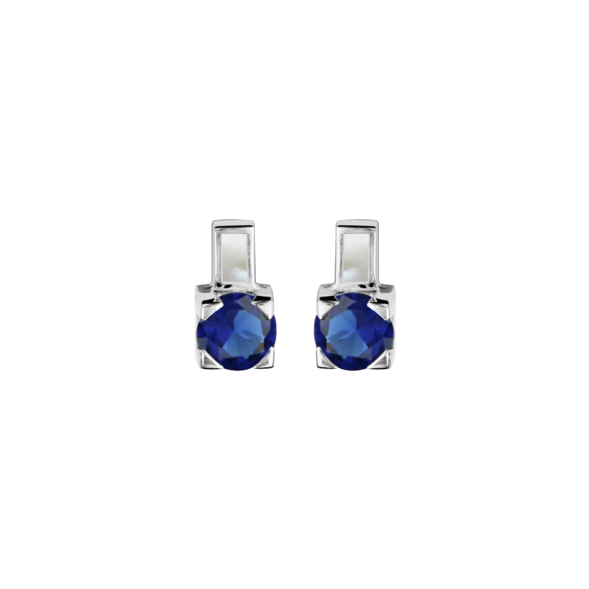 Boucles d'oreilles tige argent rhodié avec nacre blanche et pierre ronde bleu foncé synthétique