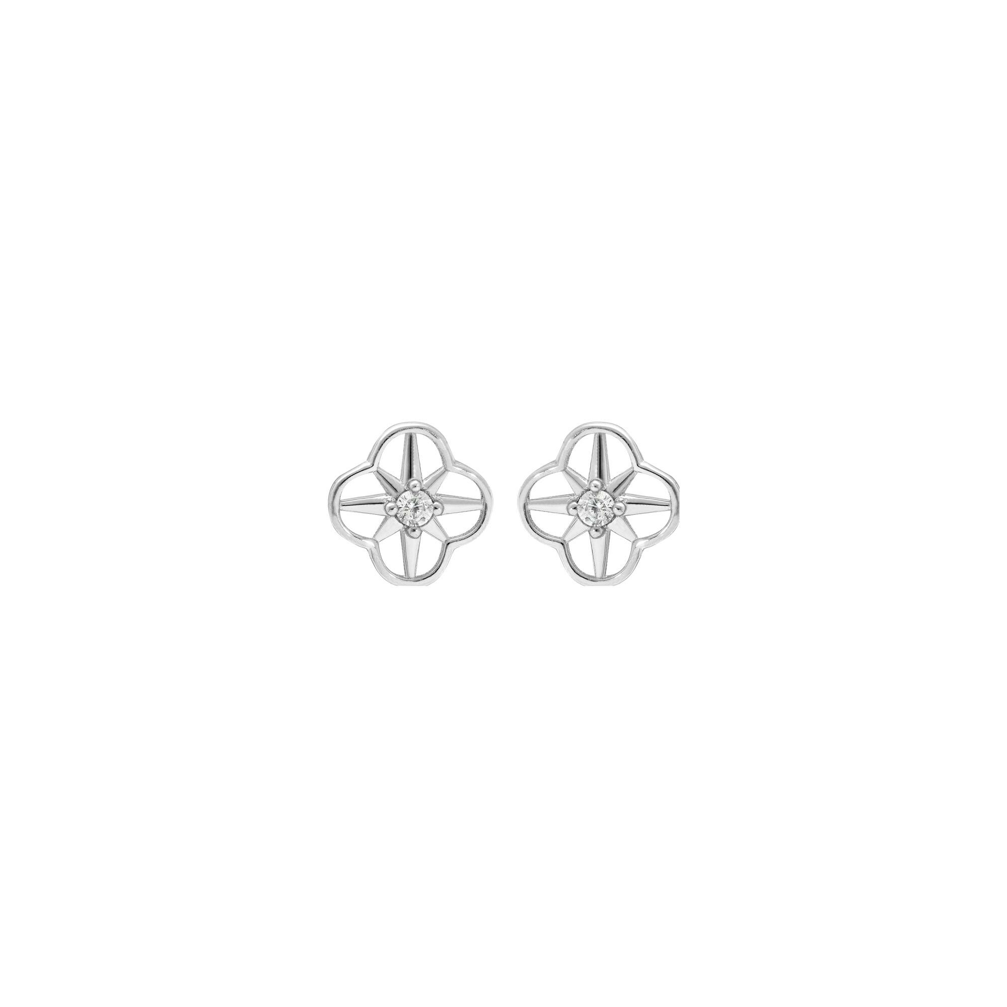 Boucles d'oreilles tige argent rhodié fleur oyyde blanc serti