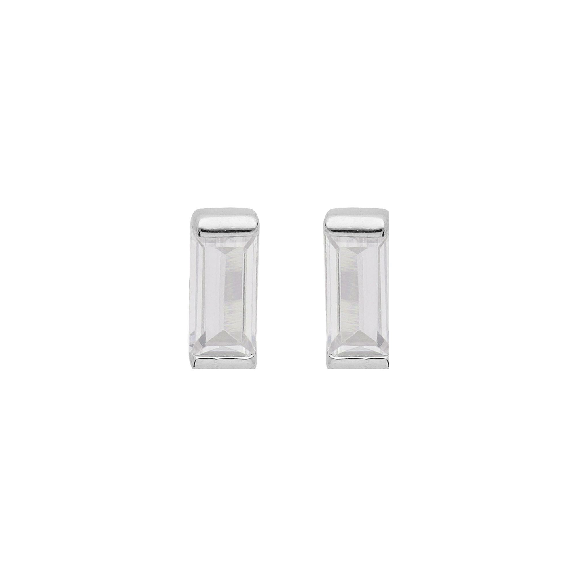 Boucles d'oreilles tige argent rhodié oxyde blanc rectangulaire