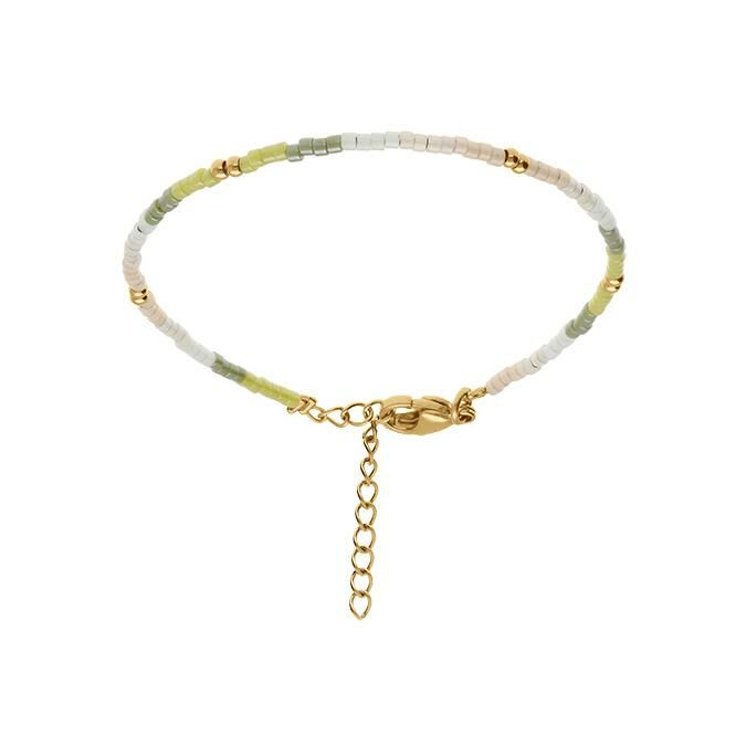 Bracelet acier doré verre nacré ton vert 16+3cm