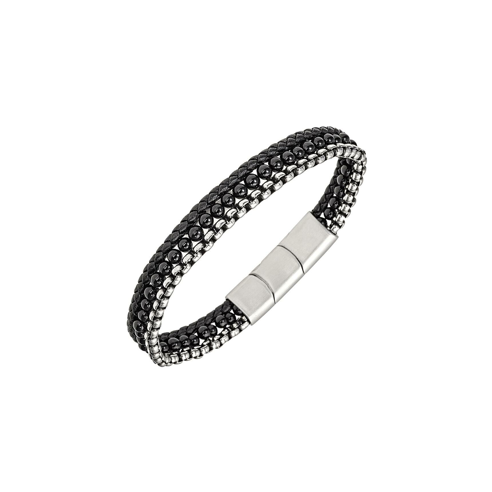 Bracelet All Blacks en acier, cuir et agate