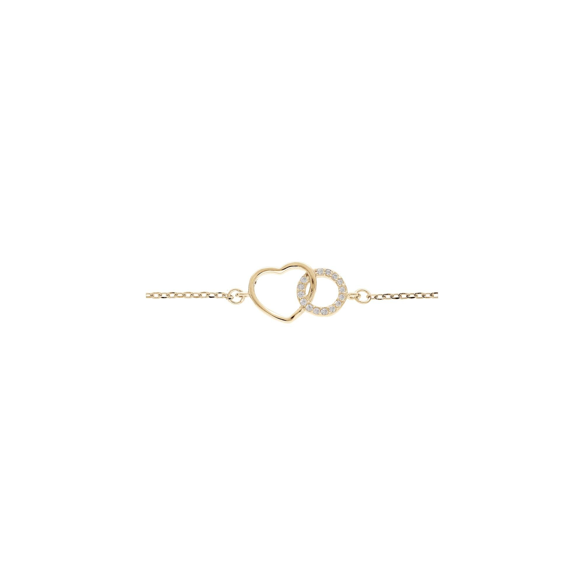 Bracelet plaqué or cercle oxydes blancs sertis entrelacé avec coeur lisse 16+3cm