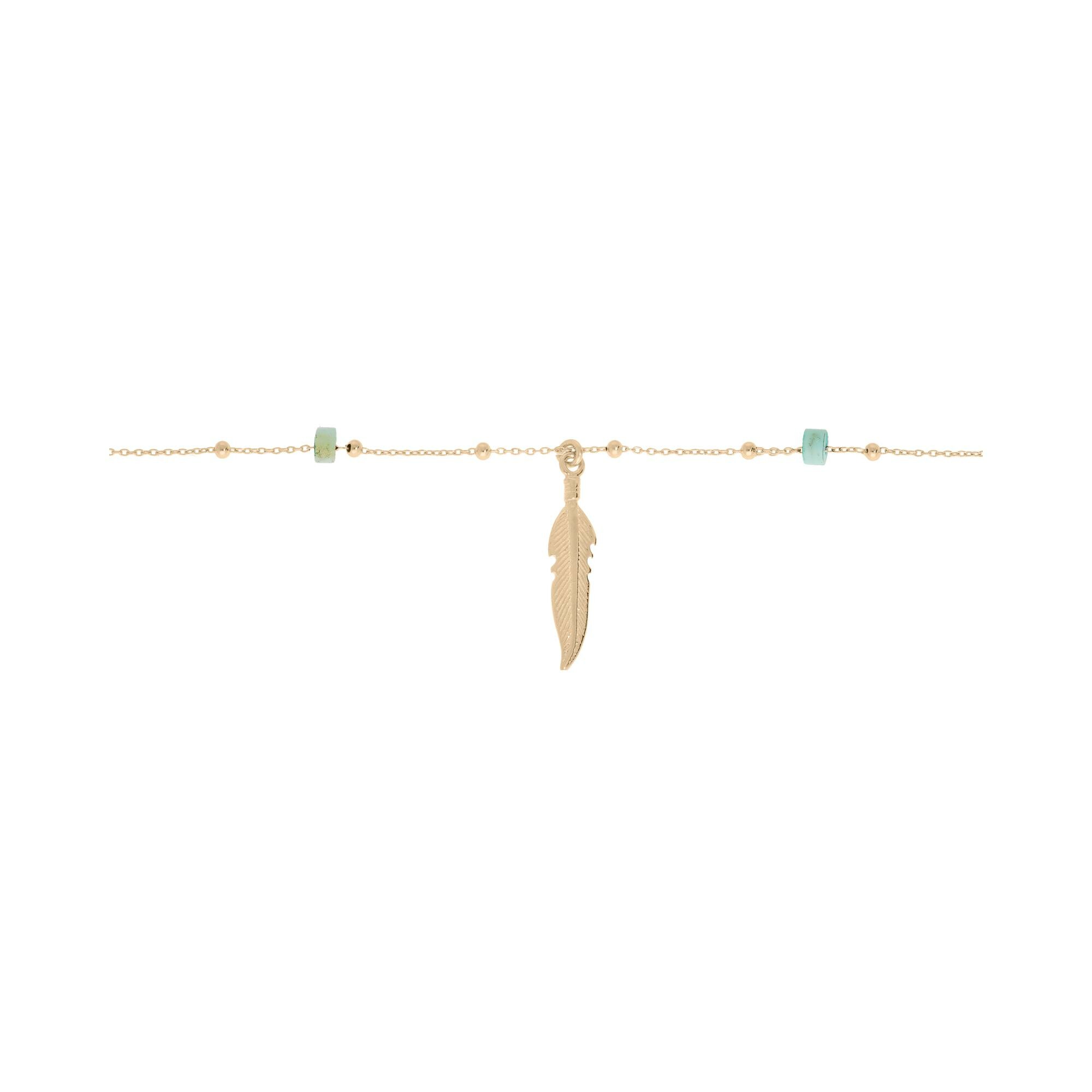 Chaîne cheville argent et dorure jaune plume rondelles turquoise véritable 22+3cm