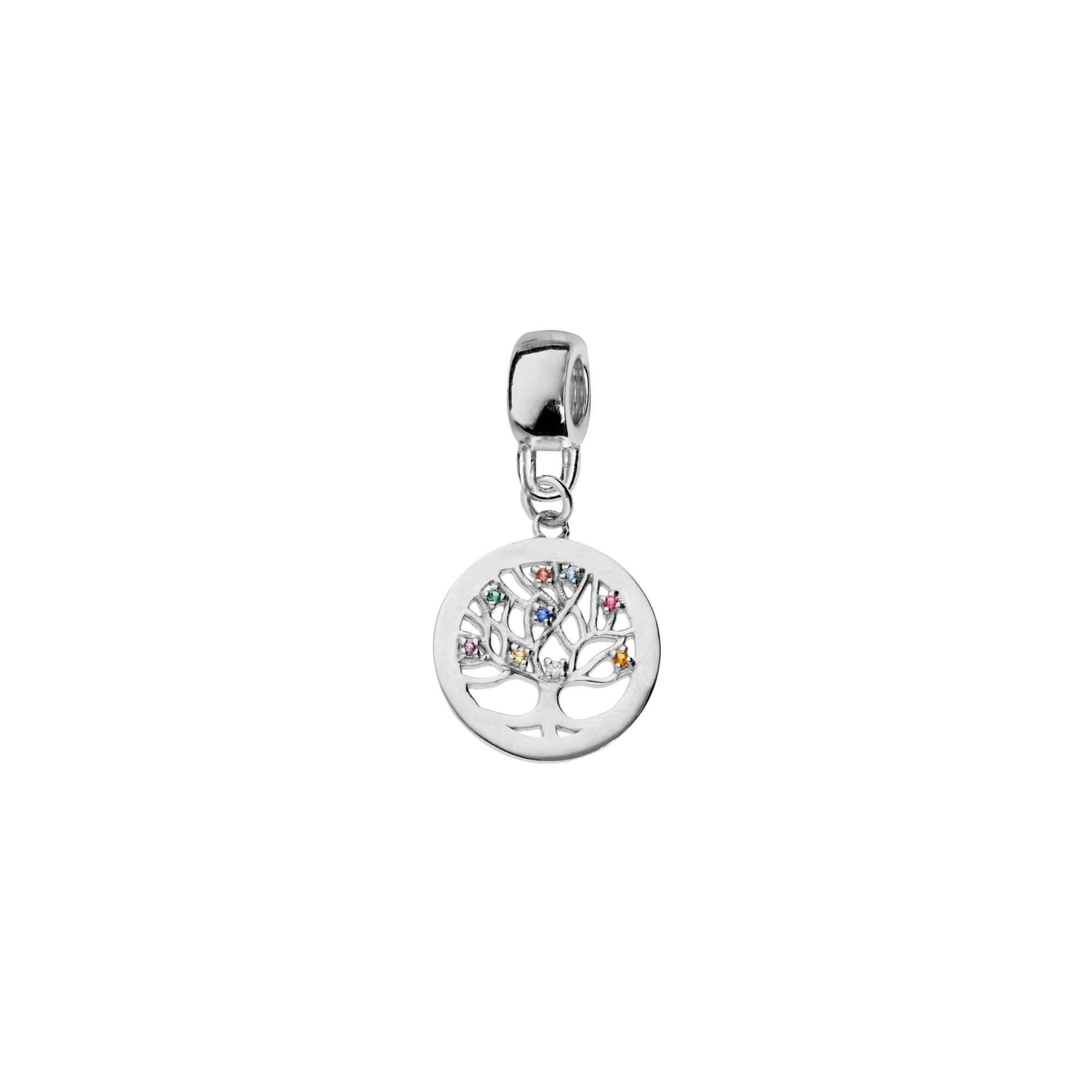 Charms coulissant argent platiné suspendu arbre de vie oxydes multi couleurs sertis