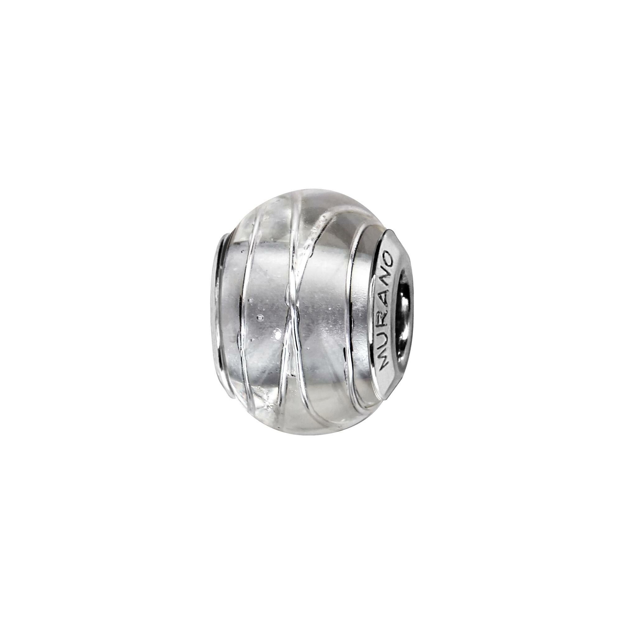 Charms coulissant argent rhodié murano blanc filet argent