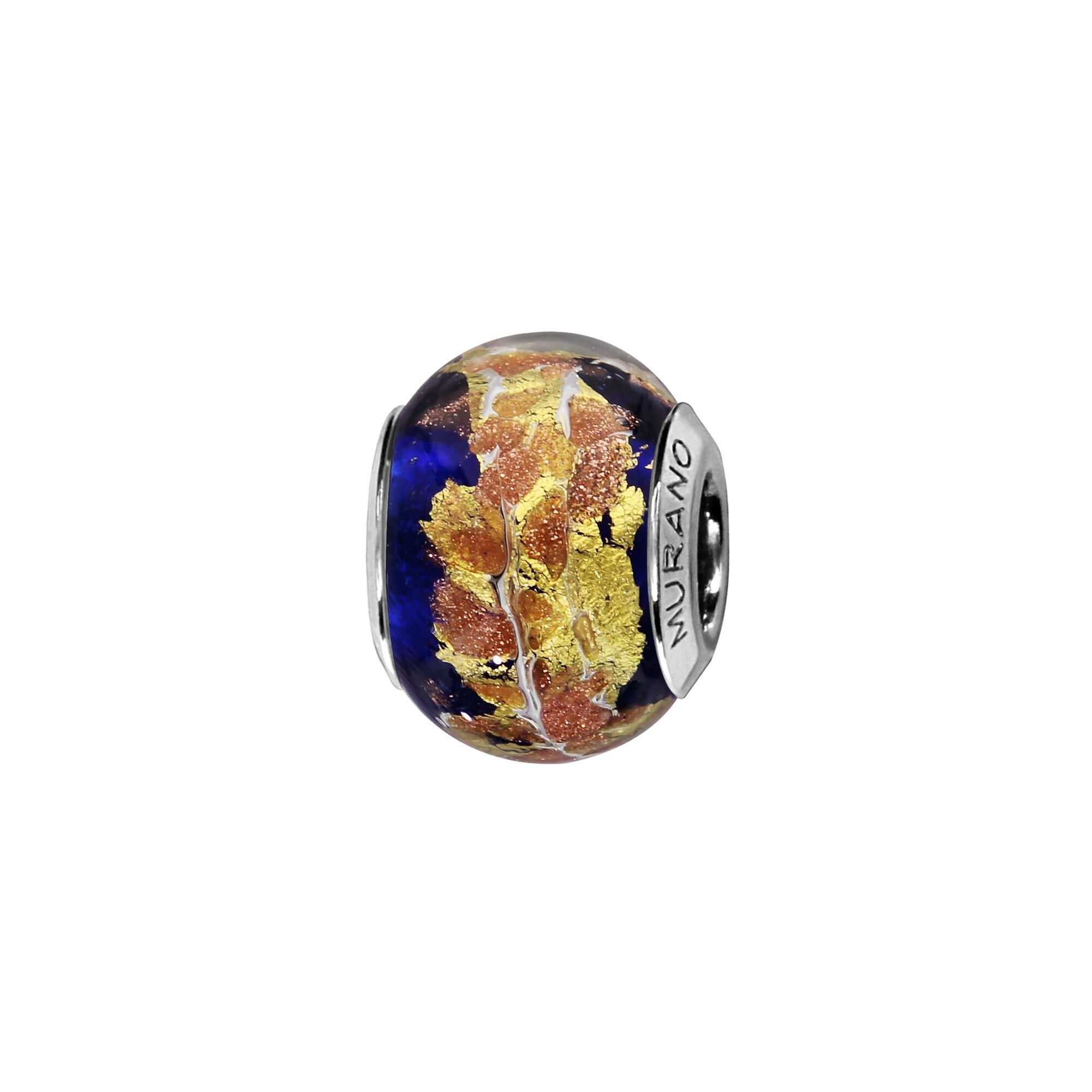 Charms coulissant argent rhodié murano bleu fonce pailleté dore