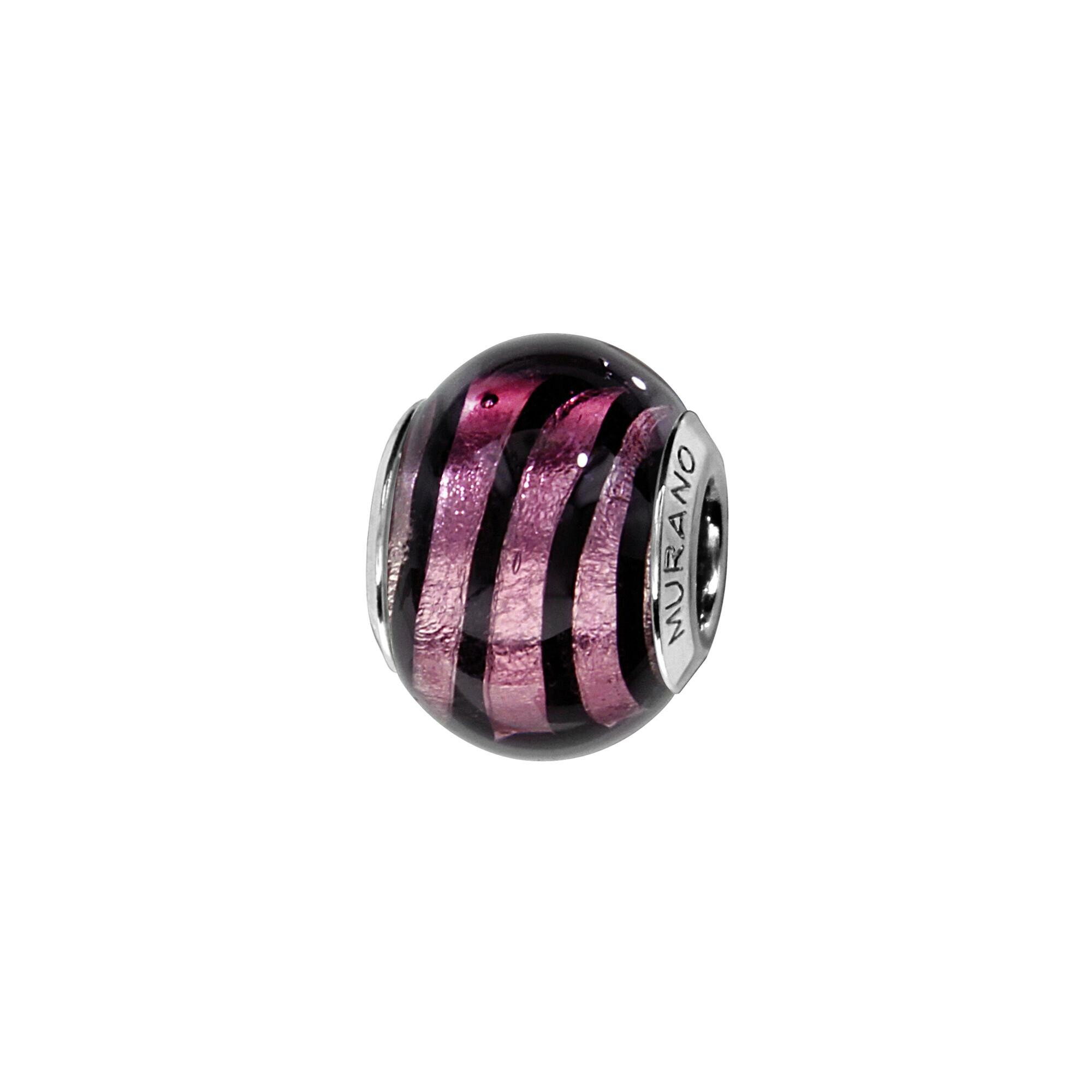 Charms coulissant argent rhodié murano véritable violet avec filet