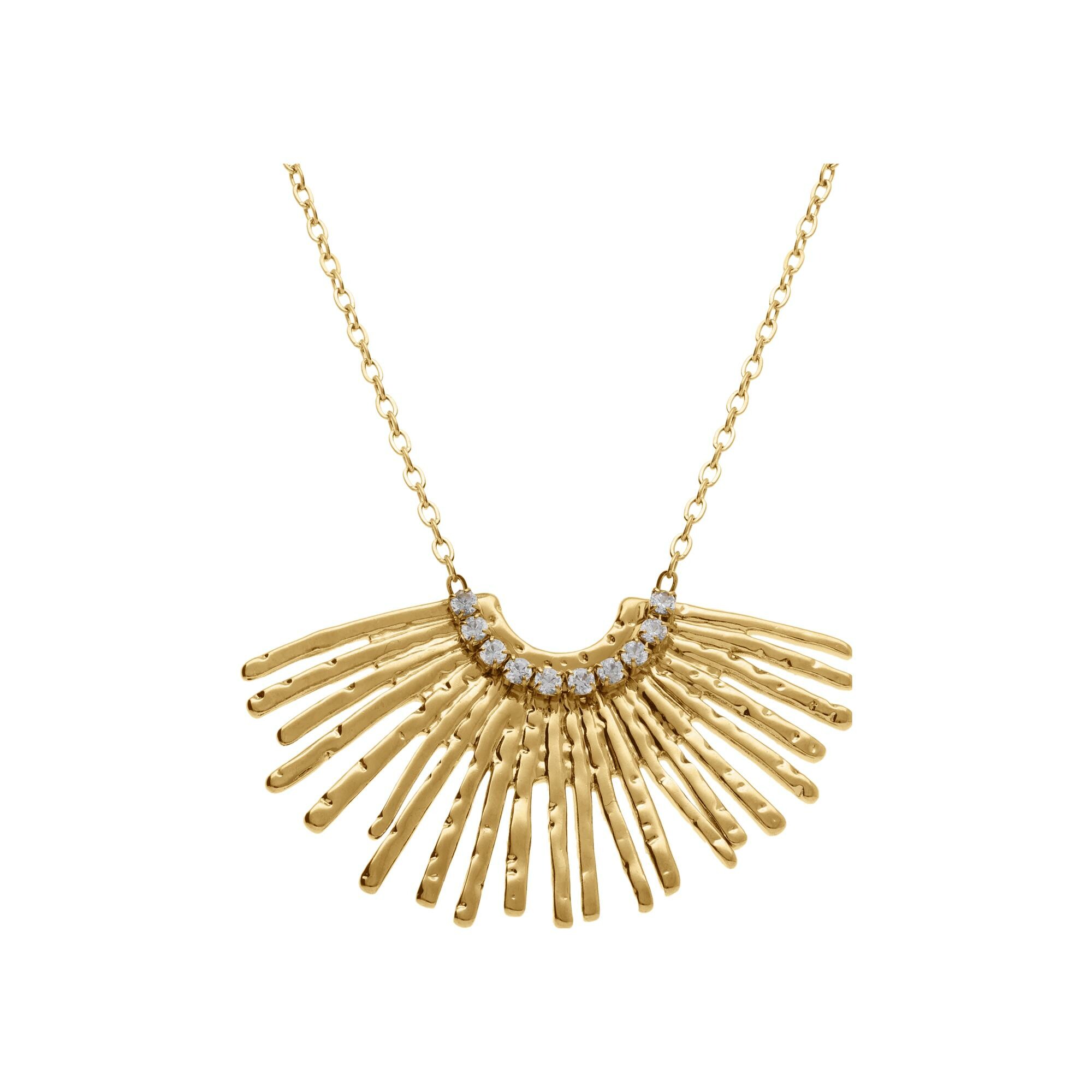 Collier acier éventail oxydes blancs sertis 43+5cm
