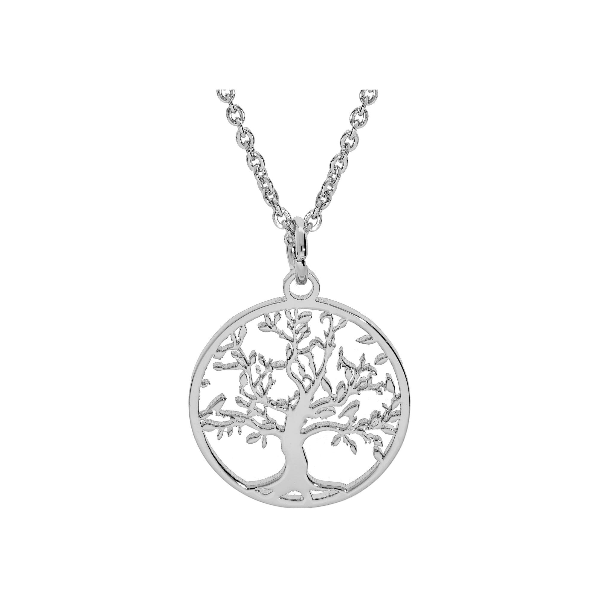 Collier acier pendentif rond arbre de vie decoupe 20mm 40+5cm