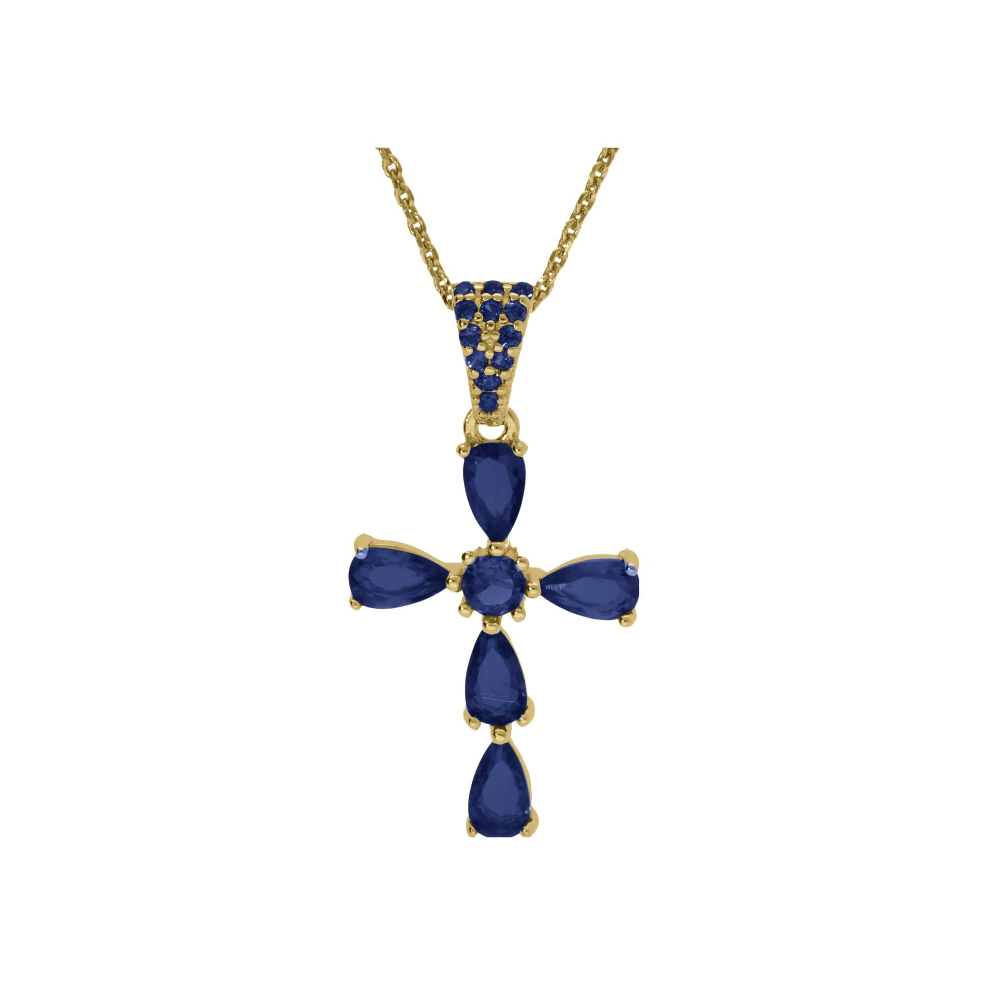 Collier argent doré pendentif croix oxydes bleu foncé 38+5cm