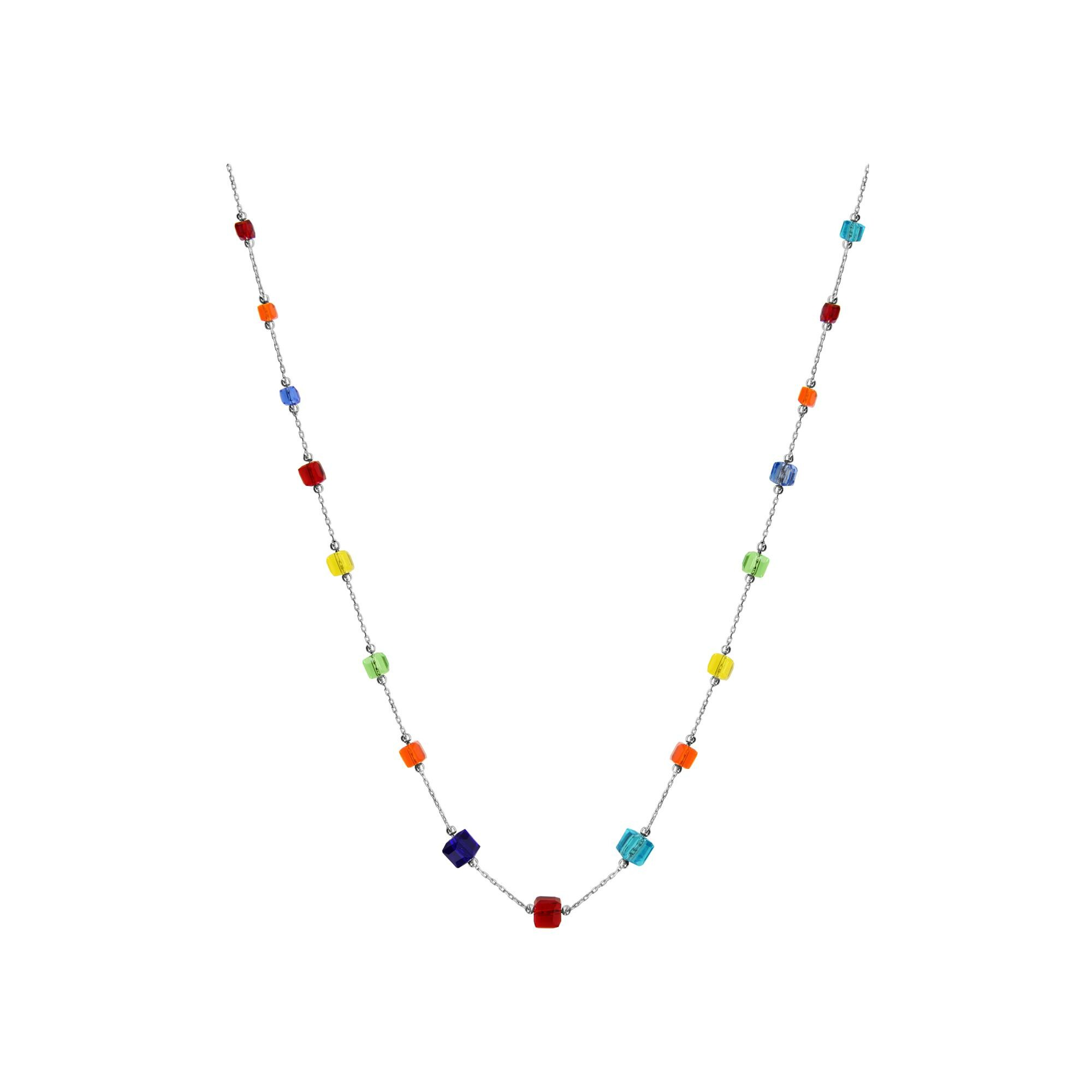 Collier argent rhodié cubes en verre multicolores 45+5cm