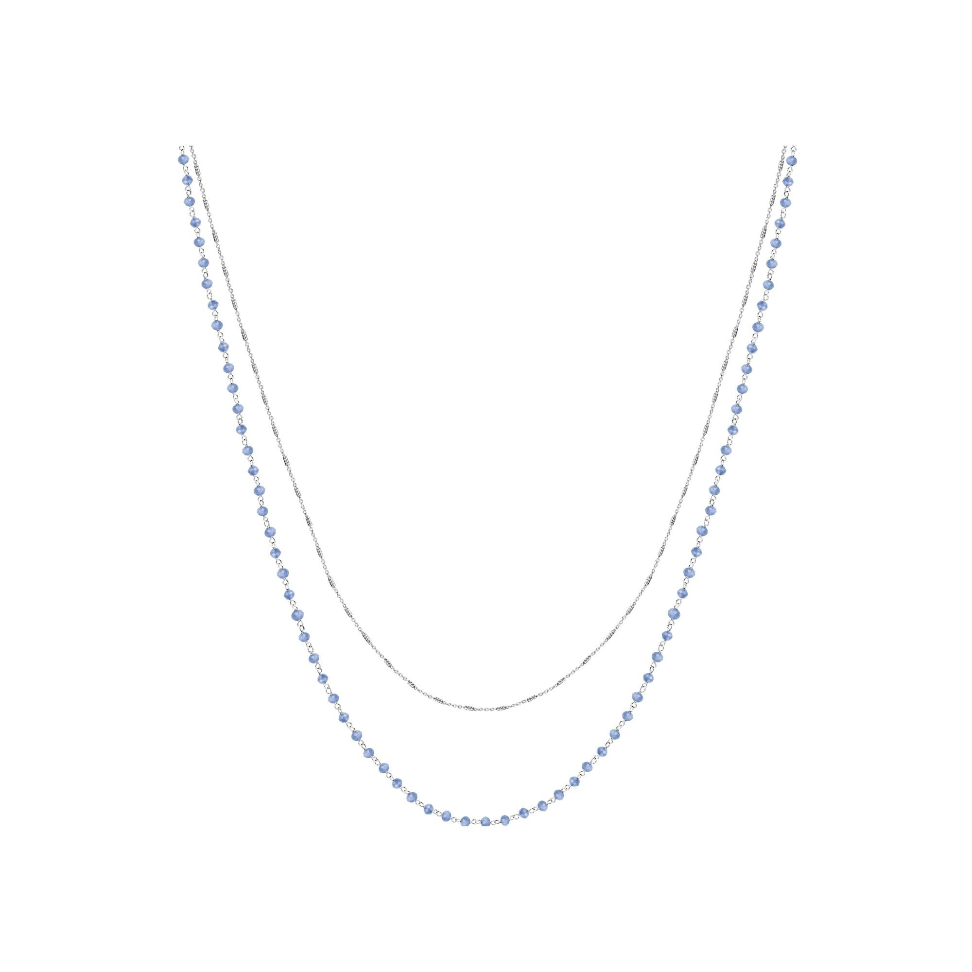 Collier argent rhodié double chaîne perles synthétique bleues 42+3cm
