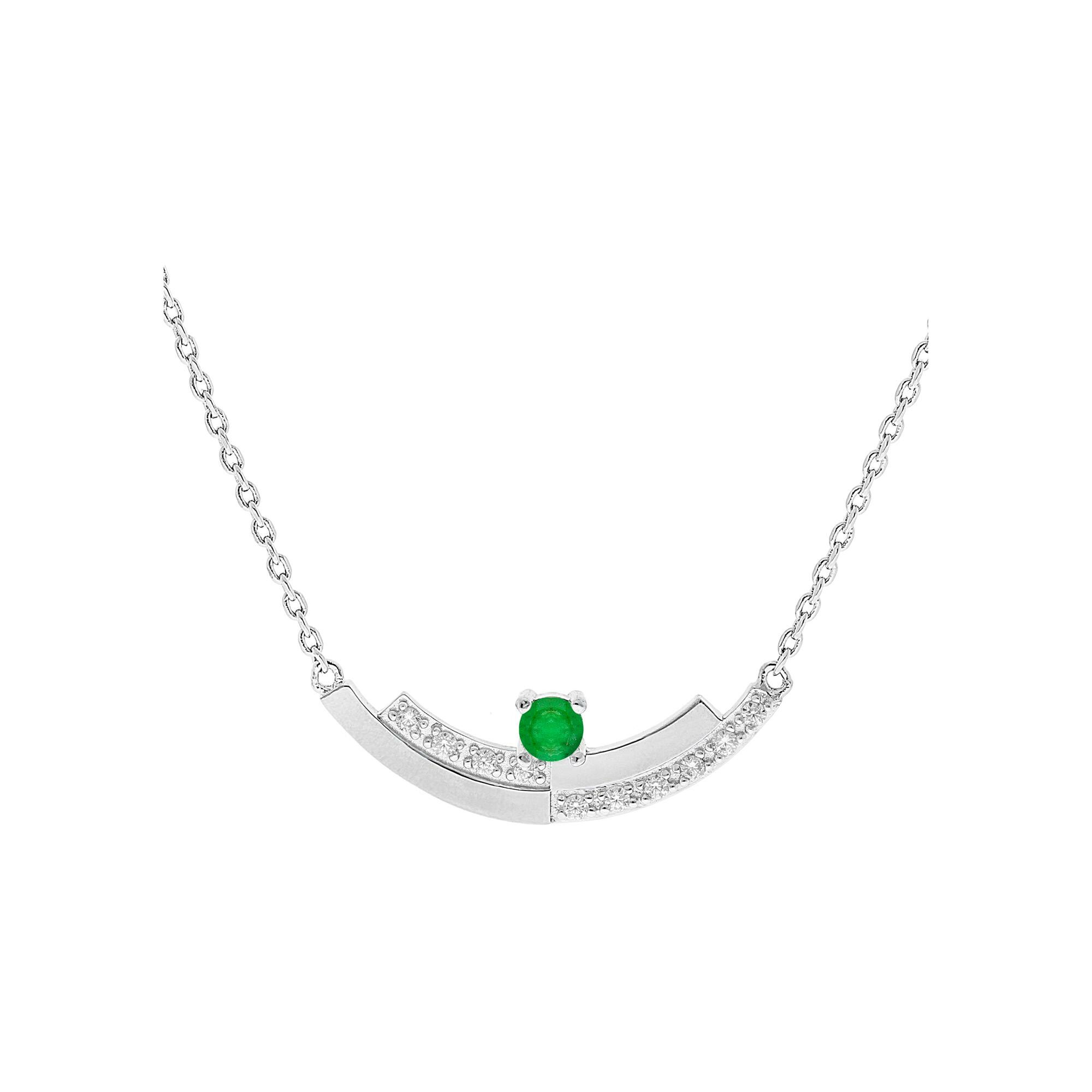 Collier argent rhodié emeraude véritable et topazes blanches 42+3cm