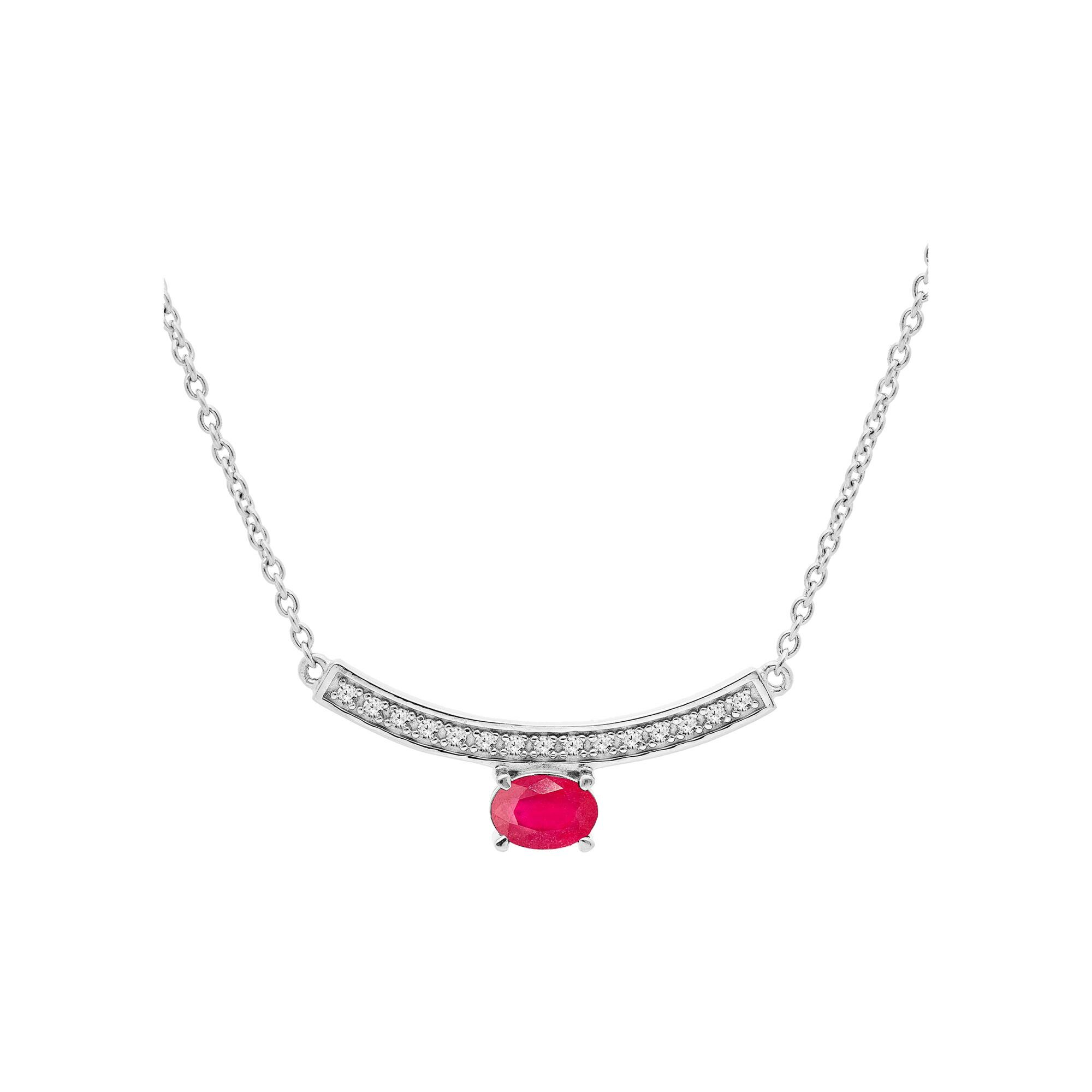 Collier argent rhodié rubis véritable et topazes blanches 42+3cm