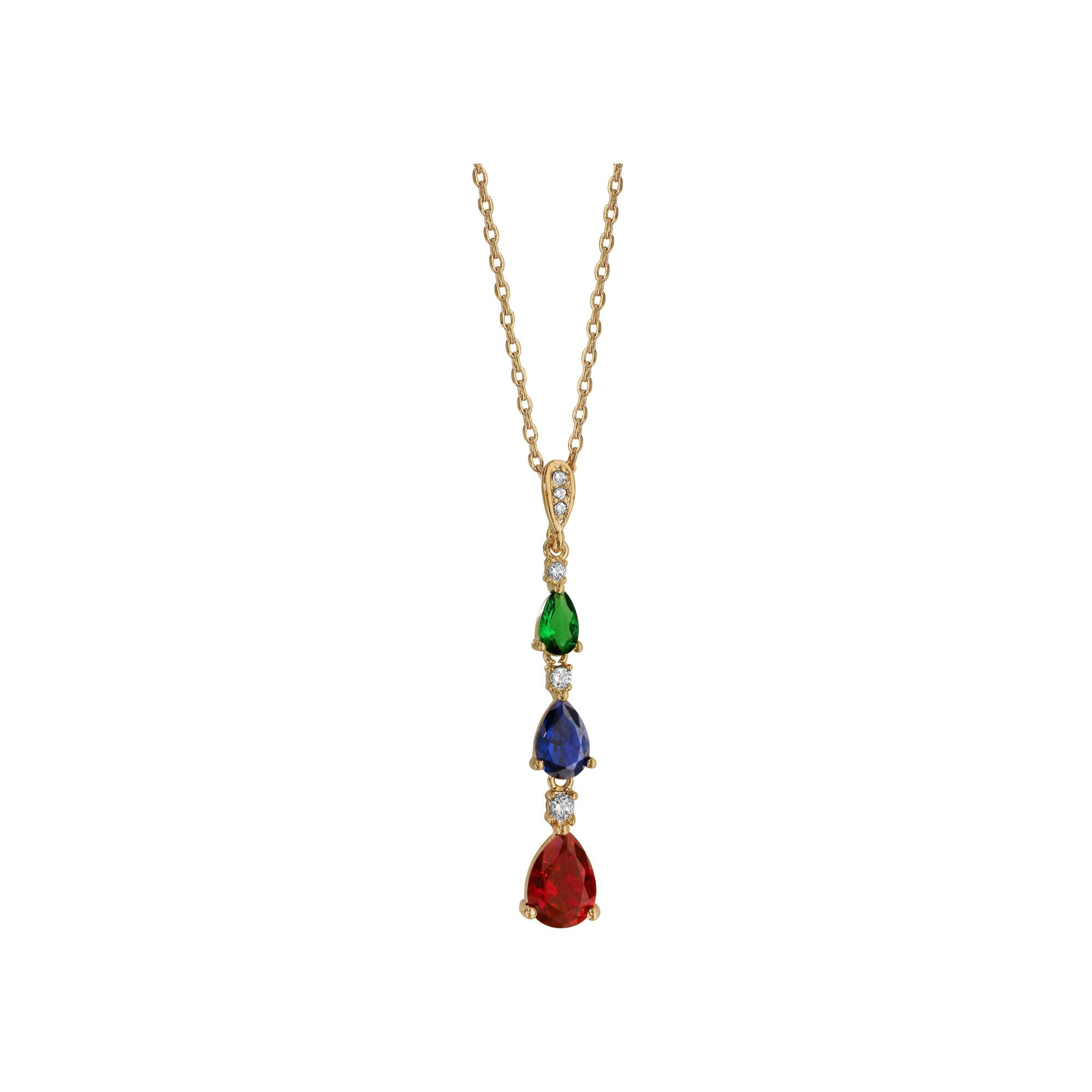 Collier plaqué or pendentif 3 pierres multicolores et 3 oxydes blancs sertis 42+3cm