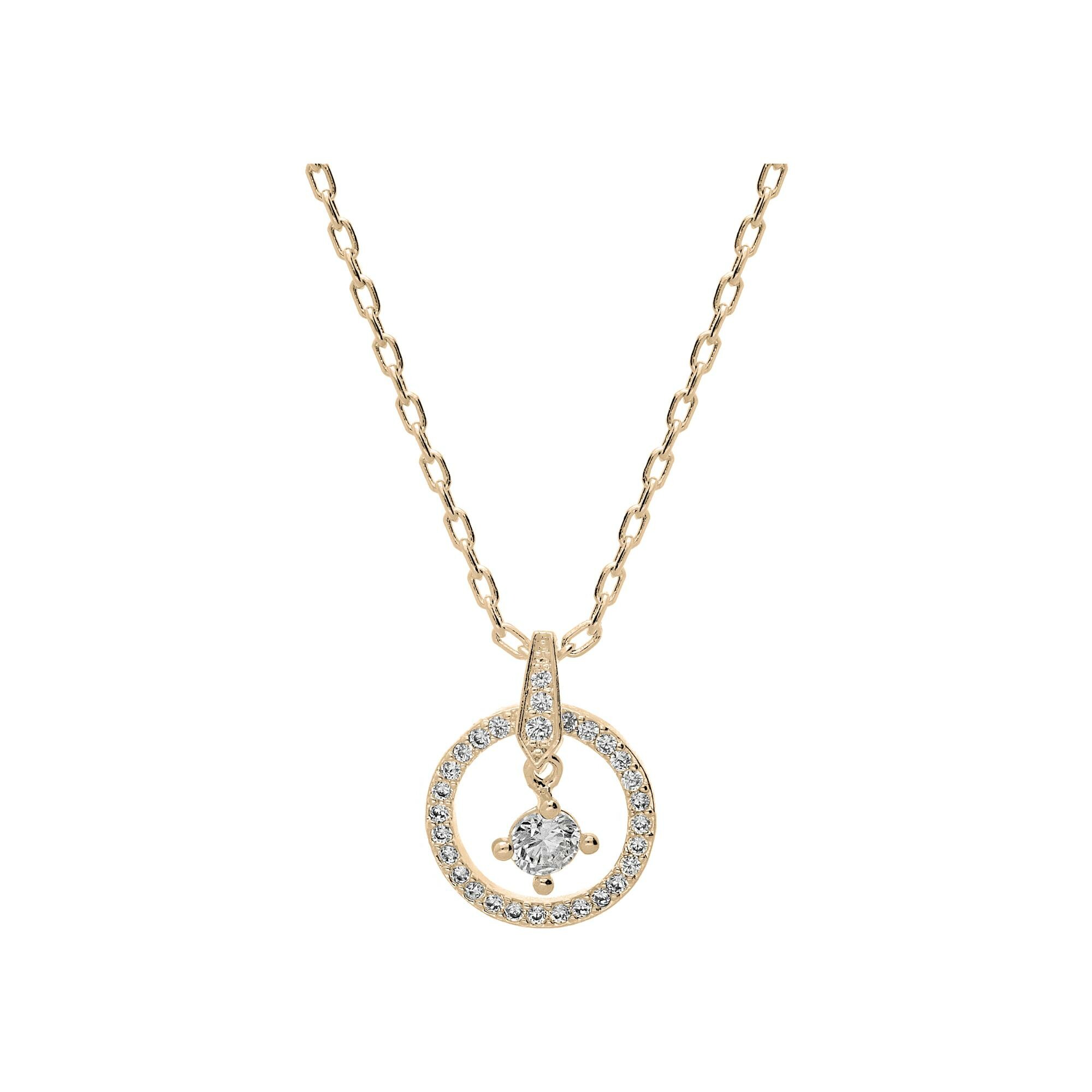 Collier plaqué or pendentif cercle oxydes blancs sertis 40+4,5cm