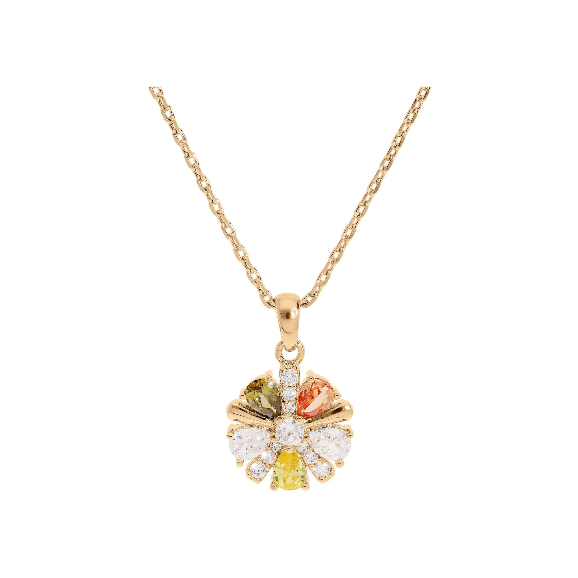 Collier plaqué or pendentif fleur oxydes sertis multi couleurs 40+5cm