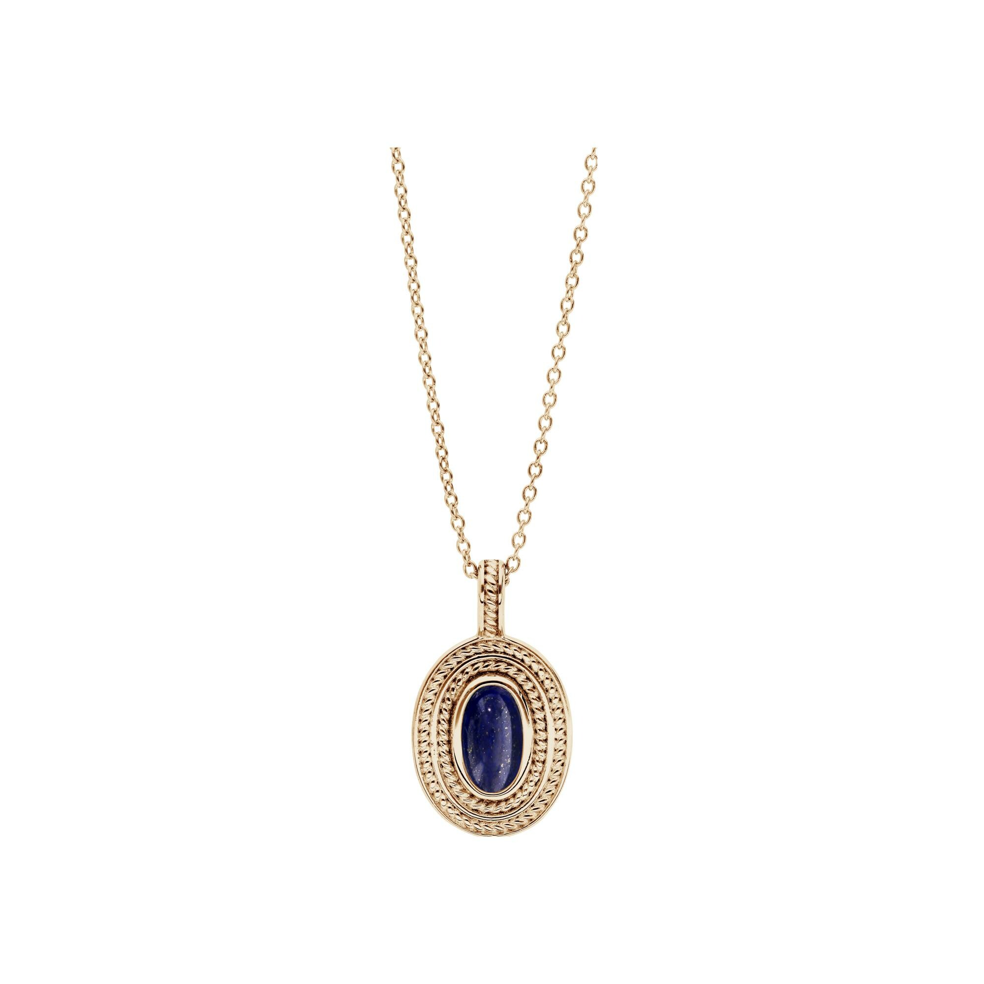 Collier plaqué or pendentif ovale pierre cabochon lapis lazuli véritable 40+4cm